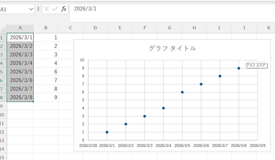 これだけで散布図等のx軸の日付がおかしい問題が解決です!
