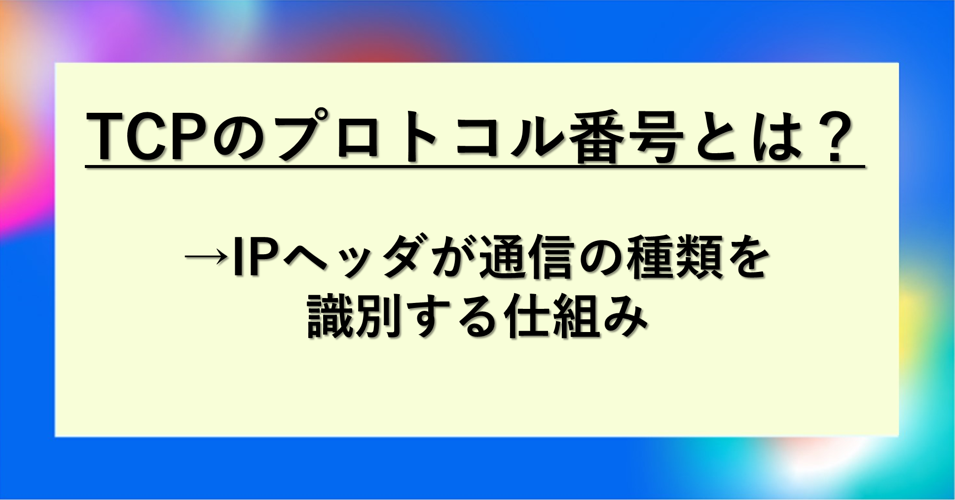 それではまず、TCPのプロトコル番号とIPヘッダによる識別の仕組みについて解説していきます。